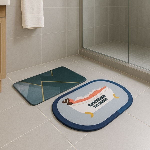 Kit 2 Tapetes Impermeável Antiderrapante Banheiro Cozinha - Redondo/Quadrado