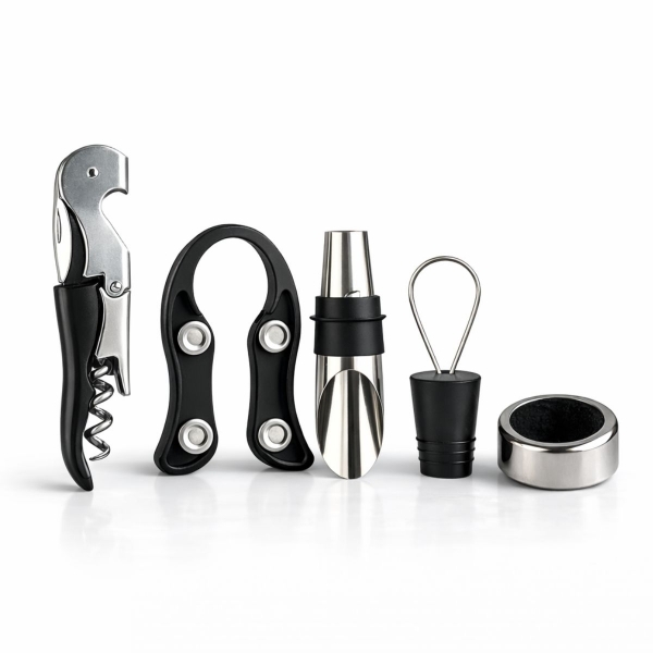 O Kit Vinho com 5 Peças foi desenvolvido para quem aprecia bons momentos e valoriza praticidade ao servir e conservar o vinho. Com acessórios essenciais, ele facilita a abertura da garrafa, o serviço sem respingos e a preservação da bebida, tornando cada taça mais agradável.