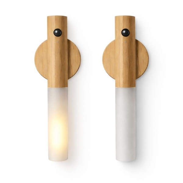 Cada luminária possui funcionamento sem fio, bateria interna recarregável via USB-C e sensor de presença, dispensando tomadas próximas e instalação elétrica. A fixação é adesiva, sem necessidade de furar a parede, garantindo uma instalação rápida, limpa e segura.