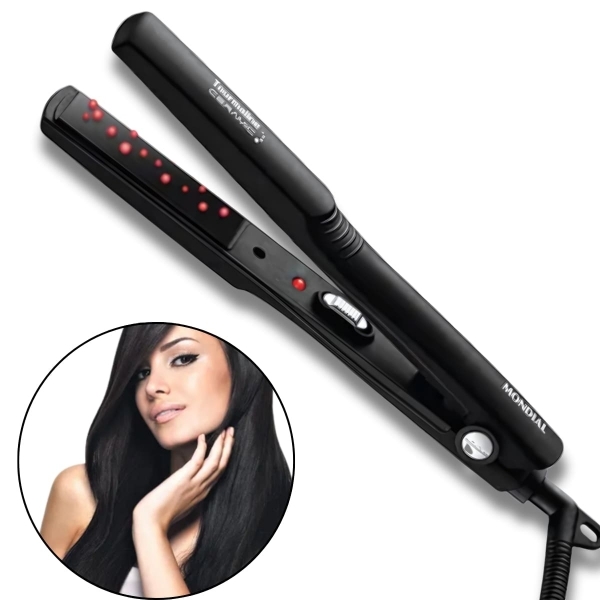 Com suas placas de aquecimento rápido, a Prancha Alisadora Mondial Tourmaline atinge a temperatura ideal em segundos, proporcionando um alisamento rápido e eficiente. Seu controle de temperatura ajustável permite personalizar o tratamento de acordo com o tipo e a textura dos seus cabelos.